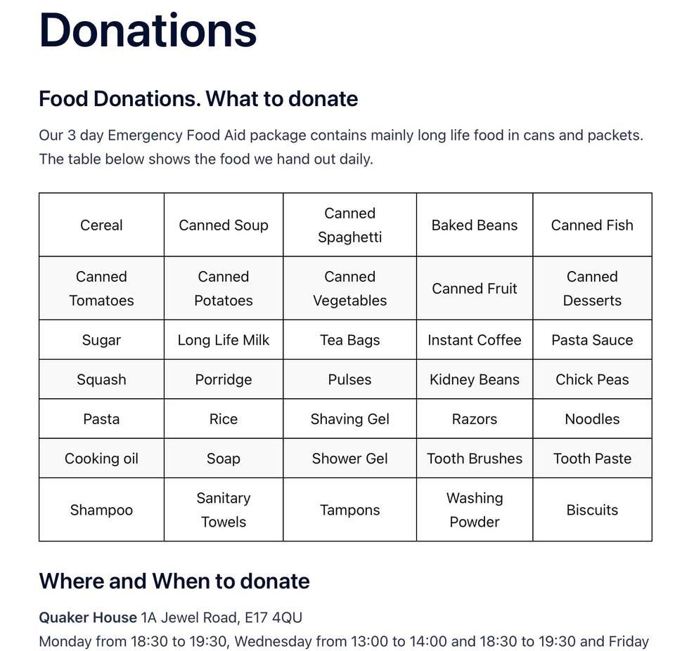 The run will start and finish at Eton Manor Rugby Club, Nutter Lane, Wanstead E11 2JA. We will be running to the Foodbank at Quaker House, 1a Jewel Road, Walthamstow E17 4QU and then back to Eton Manor Rugby Club - a distance of Approx 7 miles. You are able to bring any of the items listed below and they will be taken by car to the Foodbank in Walthamstow. We will stop for a photo opportunity when we arrive at the Foodbank. The short run this week will be the run to the Foodbank. (Approx 3.5 Miles). Let a committee member know if you need a lift back from Walthamstow to Eton Manor Rugby Club. Important: For health and safety reasons, please wear hi-vis clothing or lights when running, so that you are visible to cars and cyclists and be careful when crossing roads. Map of Route: www.mapometer.com/en/running/route_5424987.html
